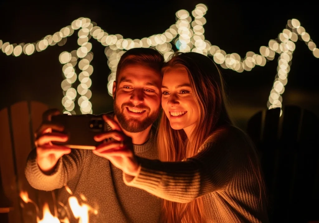Take a few photos to remember the night — use natural light from the fire and avoid harsh flash. Try candid shots that capture laughter and closeness.